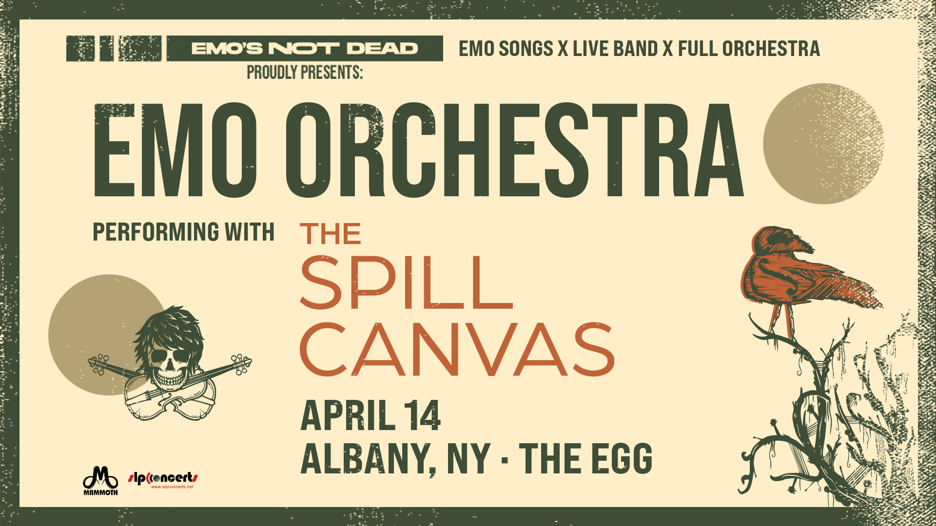 For emo music lovers and orchestra aficionados alike, Emo Orchestra is a new live experience that brings some of the most beloved emo songs of your youth to the theater stage with a full orchestra arrangement. This Spring, Emo Orchestra welcomes THE SPILL CANVAS as the featured guest. Fans will hear THE SPILL CANVAS perform their own hits as well as songs by Taking Back Sunday, Fall Out Boy, A Day to Remember, The Used and many more.